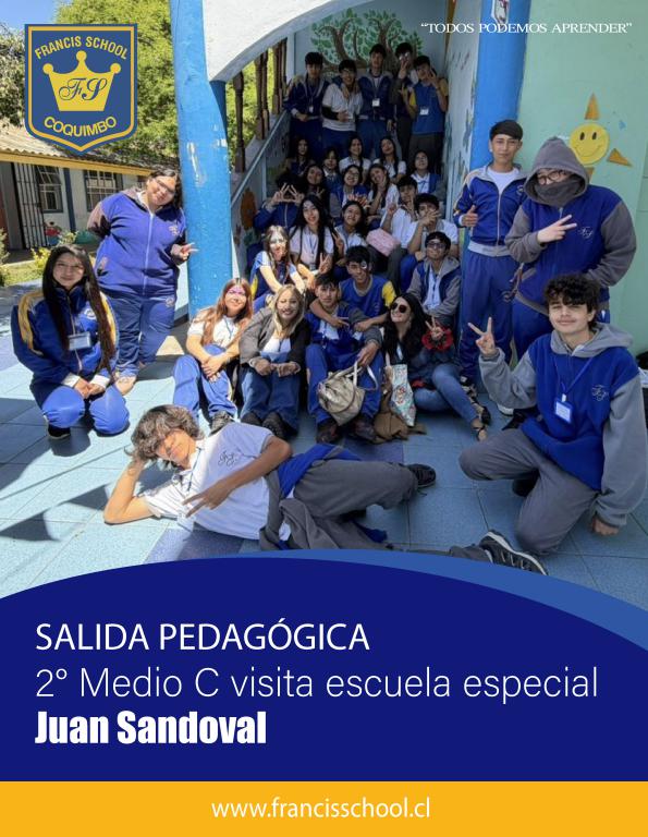 El viernes 7 de noviembre, el curso 2° Medio C realizó una salida pedagógica a la escuela especial Juan Sandoval, en el marco de la Unidad 3 de Religión, cuyo propósito fue que los estudiantes desarrollen su vocación de servicio y conozcan contextos distintos al propio, especialmente en torno a la inclusión.