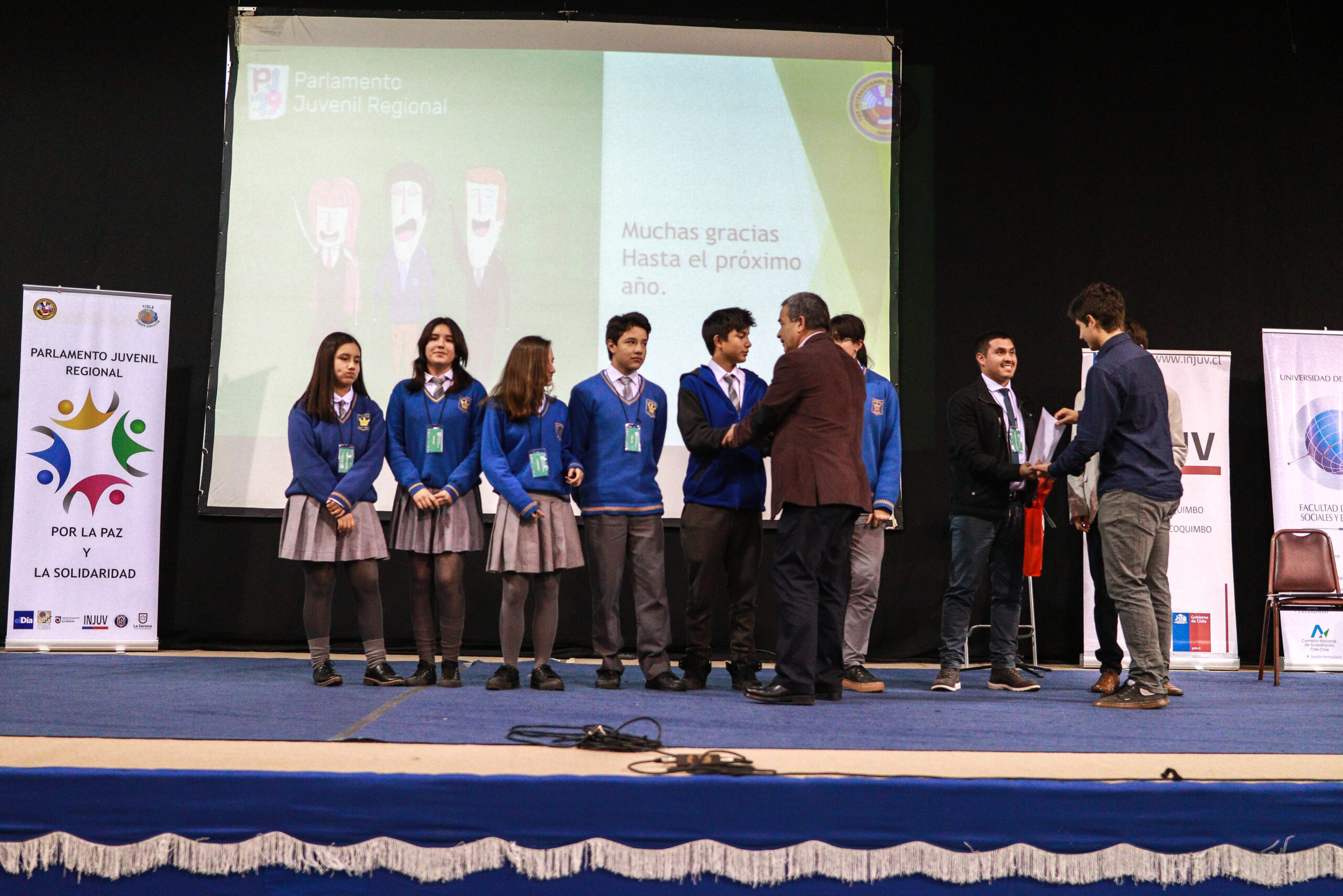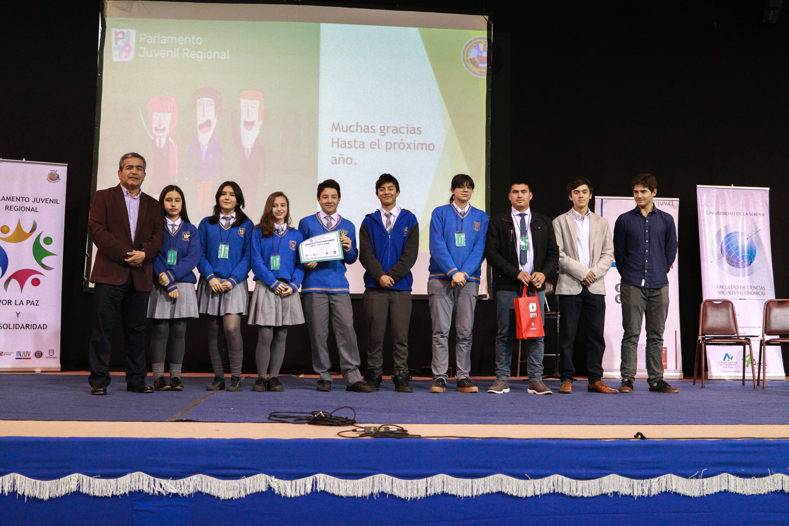 Los alumnos Pablo Torrejón del 8° Básico B; María Gracia y Catalina Yañez del 1° Medio C; Sofía González, Rocío Gallo y Felipe Lazo del 2° Medio C, en conjunto con el docente de Historia y Geografía, Christopher Flores, asistieron al VI Parlamento Juvenil por la Paz y la Solidaridad, generado por el International School La Serena.