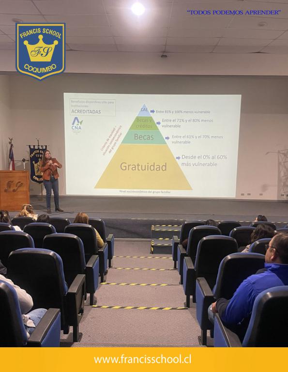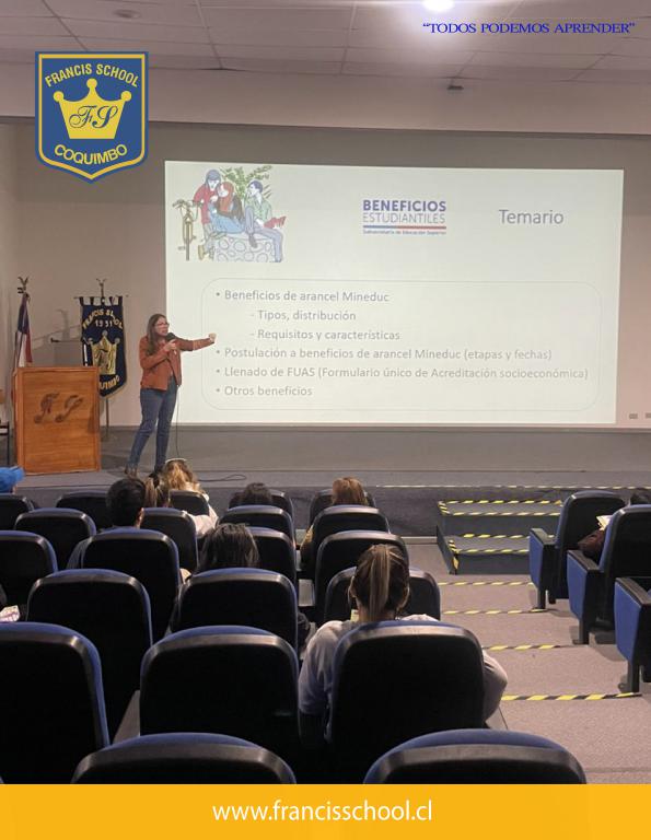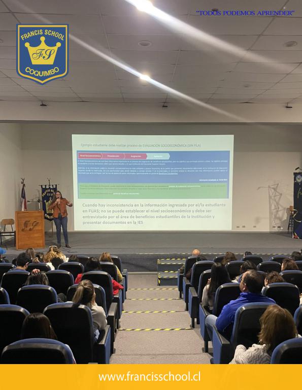 El pasado jueves 9 de octubre se realizó una charla informativa dirigida a los apoderados de estudiantes de cuarto medio de nuestro colegio, con el objetivo de prepararlos para el proceso de postulación a beneficios estudiantiles en el egreso de sus hijos y su posterior ingreso a la educación superior.