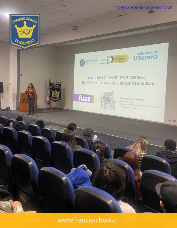 La jornada, organizada por los Departamentos de Orientación y UTP del colegio, tuvo lugar en el auditorio y contó con la destacada participación de la Sra. Patricia Astroza Morgan, Coordinadora del Departamento de Bienestar Estudiantil de la Universidad de La Serena (USERENA).