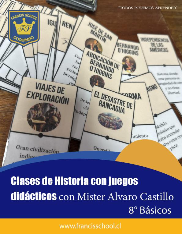 El Profesor Álvaro Castillo, de la asignatura de Historia y Geografía, ideó y desarrolló el “Dominó de Conceptos”, un juego didáctico interactivo implementado con gran éxito en octavo básico.