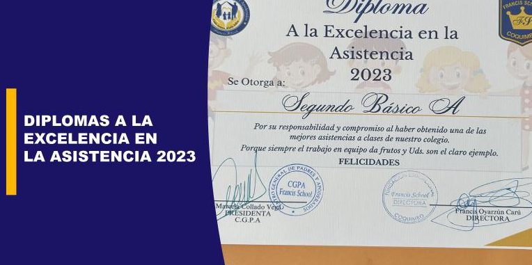 Durante la semana pasada se exhibieron en todos los murales los diplomas a los cursos que ganaron la Excelencia en la Asistencia del 2023. Estos diplomas están siendo entregados durante esta semana por Miss Fabiola Carmona, encargada del departamento de Convivencia Escolar, junto con el Inspector General, sr. Jorge Villalobos.