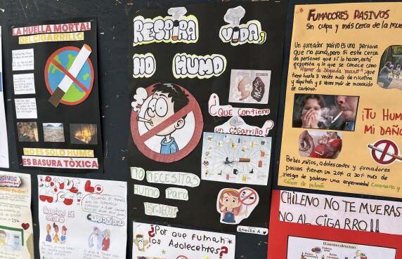 Estudiantes de quinto básico concientizan sobre los efectos del cigarrillo con potentes afiches.