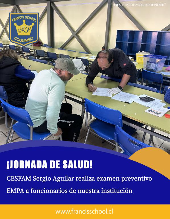 En colaboración con el CESFAM Sergio Aguilar, hoy estamos llevando a cabo una Jornada de Salud en nuestro edificio principal. Se está realizando el Examen Médico Preventivo del Adulto (EMPA), una iniciativa clave para el bienestar de todos.