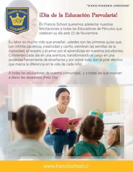 En Francis School queremos adelantar nuestras felicitaciones a todas las Educadoras de Párvulo que celebran su día este 22 de Noviembre.