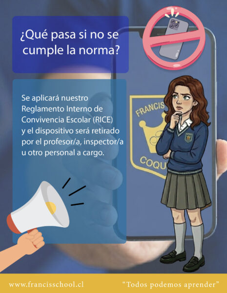 De acuerdo a la Ley 21.801 que establece la prohibición del uso de dispositivos móviles electrónicos de comunicación personal en establecimientos educacionales, nuestro colegio se adhiere a las jornadas libres de pantallas.