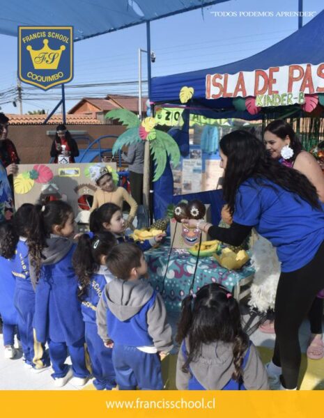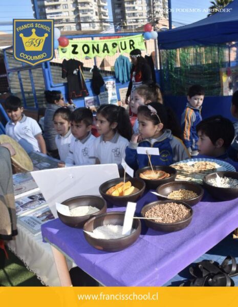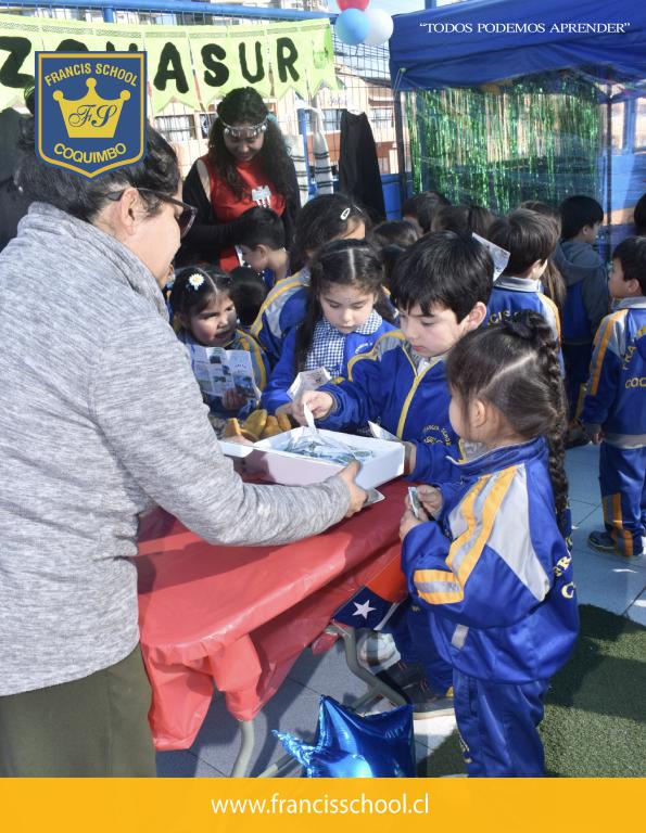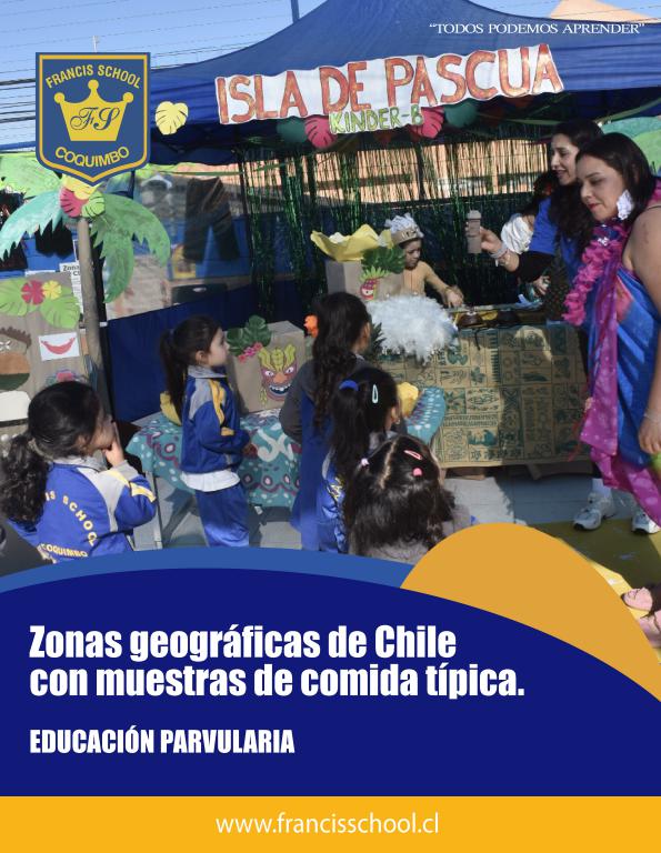 Con gran alegría y creatividad, los estudiantes de educación parvularia realizaron una exposición sobre las zonas geográficas de Chile. La actividad incluyó stands temáticos que representaban el Norte, Centro, Sur e Isla de Pascua, cada uno con muestras de comida típica de cada zona.